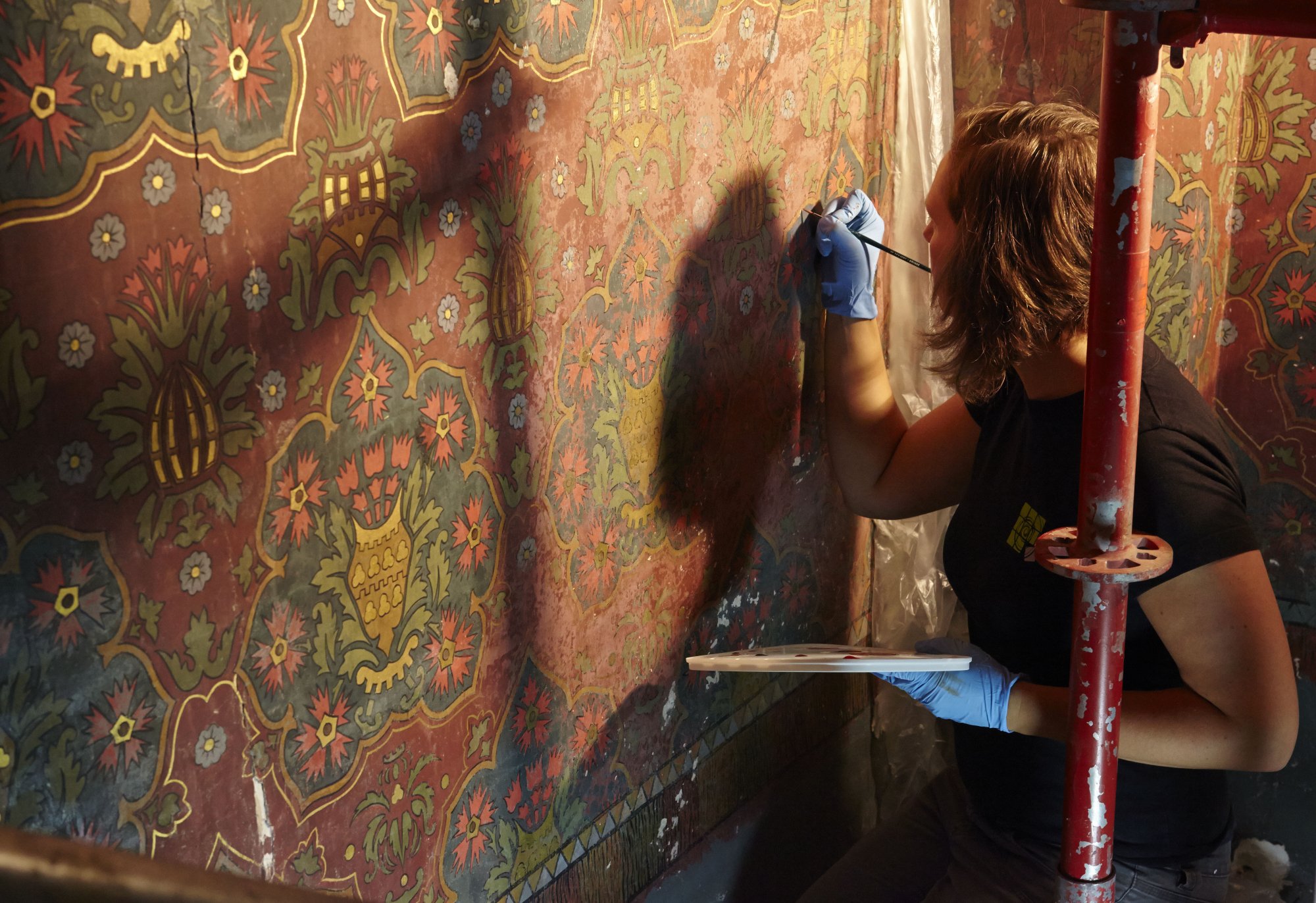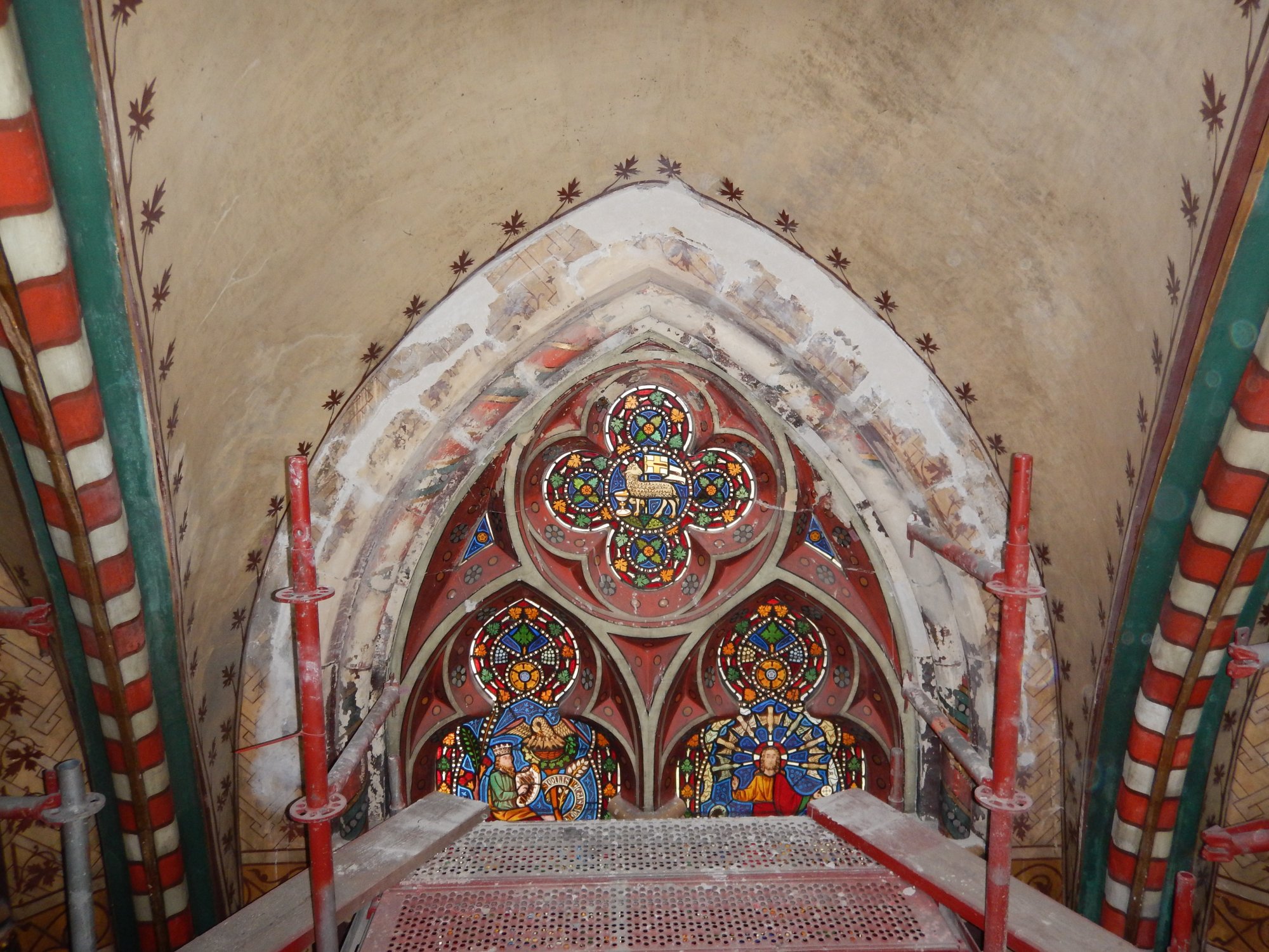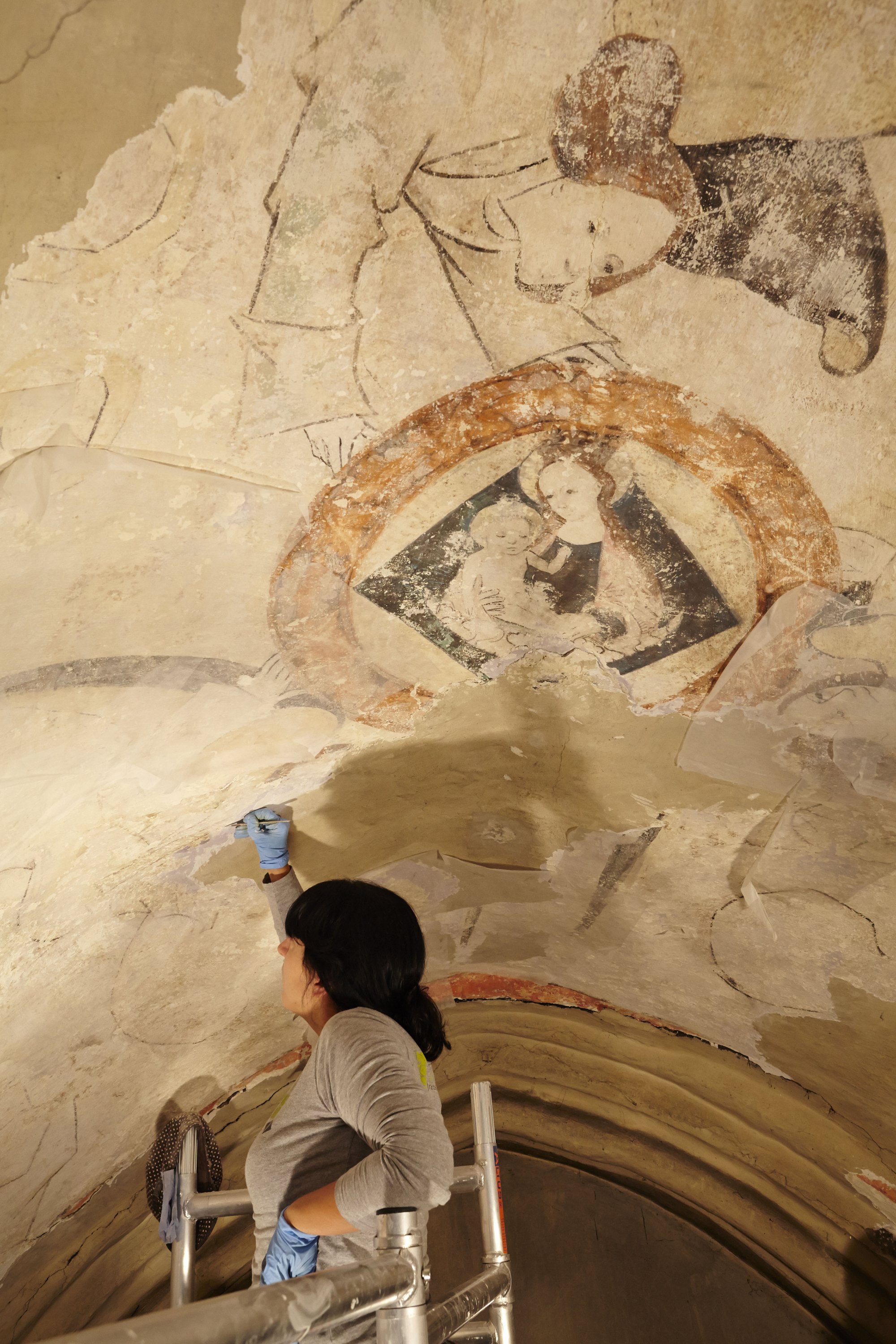 Op de vijf gewelfschalen werden figuratieve schilderingen teruggevonden, waaronder een madonna met kind en engelen. Ook de polychrome, decoratieve schilderingen op de ribben rondom de gewelfschalen werden vrijgelegd.